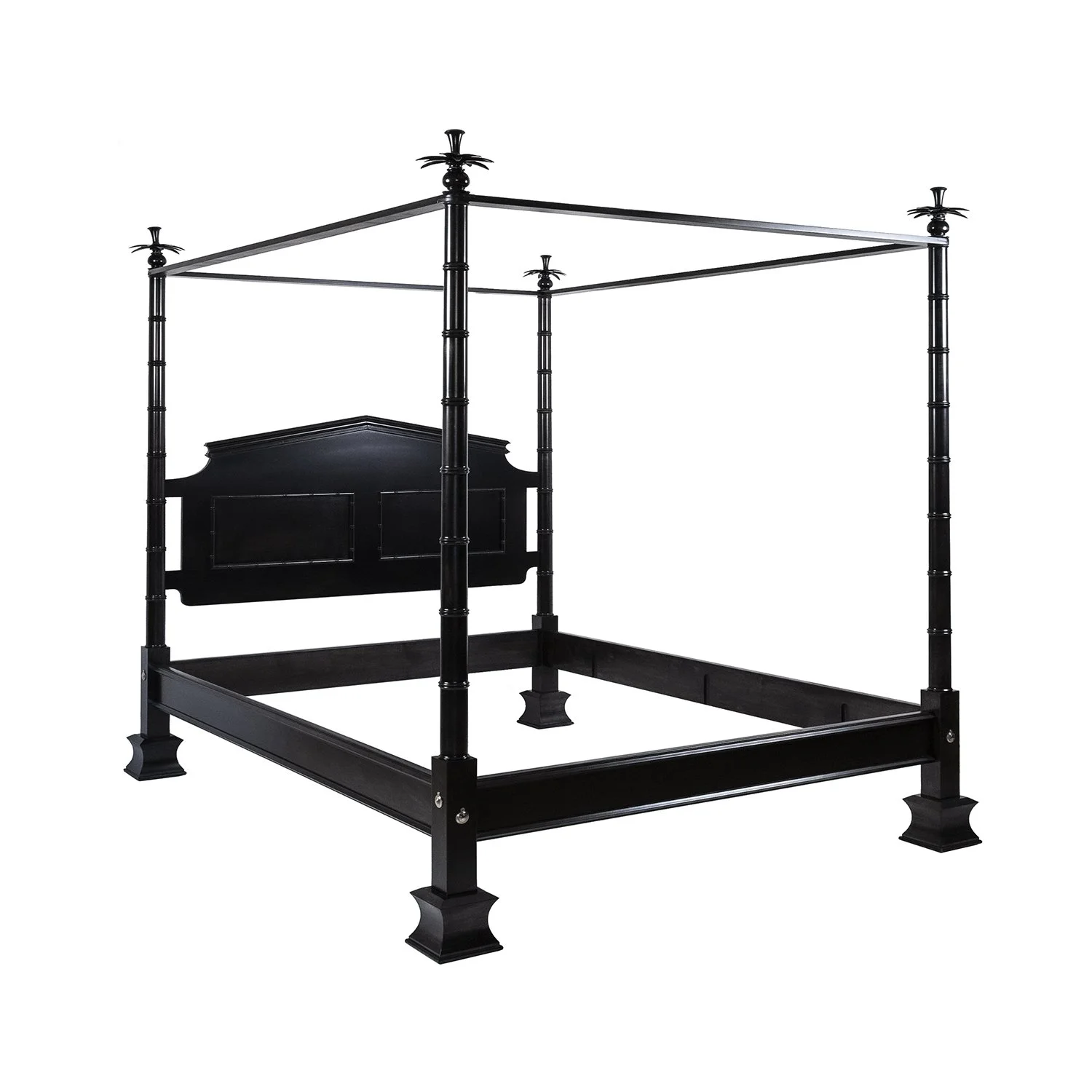 A classic bamboo silhouette, featuring hand-carved palm frond finials and bamboo detailing throughout. Available with or without the canopy.